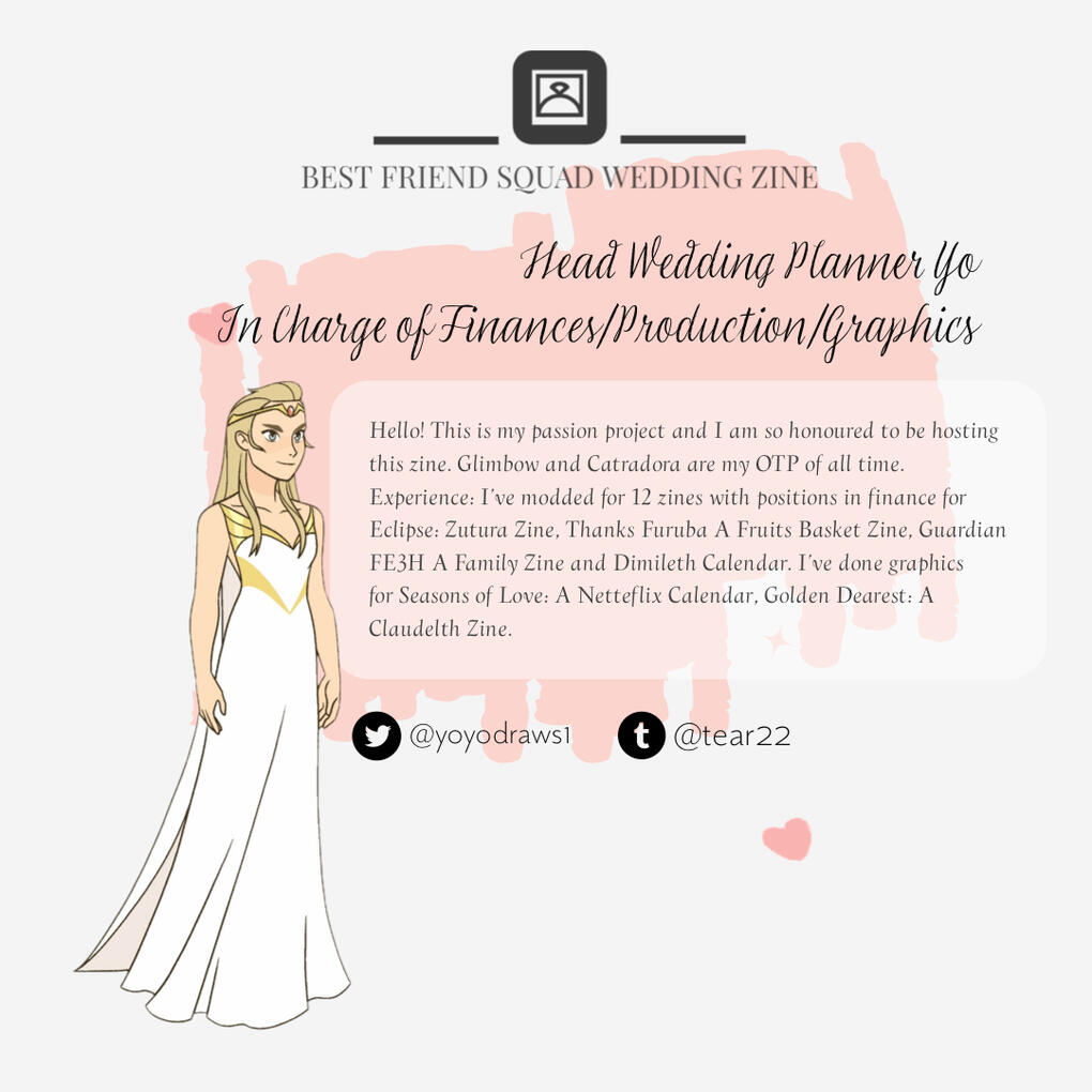 Yes, we will be giving assignments to our writers and artists to equally distribute the content for the zine between both Catradora and Glimbow This is to ensure that both ships are represented equally in the zine. Artists will be assigned based on their interest. In our applications, you will be given the option of indicating whether you want to create art for Catradora, Glimbow, or a double wedding !